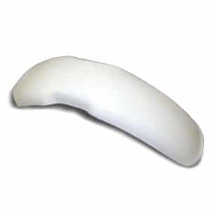 Plastic front fender with molded-in mudflap, patterned off a late-model Bultaco Sherpa T, with a width of 3-3/4".